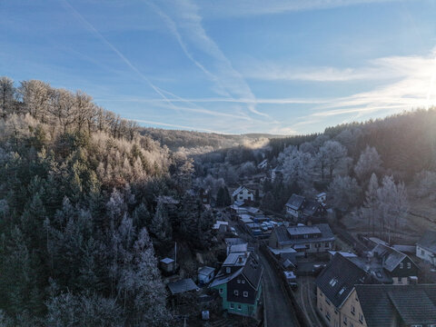 Landscape in Schwarzwassetal in german Ore mountains in foggy morning on 20th october 2018