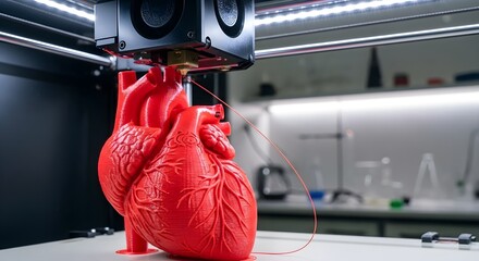 Macro 3D Printer Producing Red Anatomical Heart Model, Organ Donation Research & Medical Innovation