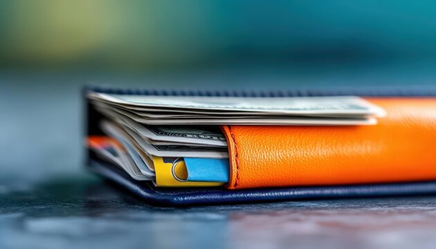 A close-up view of a stylish wallet featuring cash and cards organized neatly, perfect for showcasing finance and personal items.