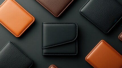 Leather wallets are displayed in a variety of colors and textures, showcasing craftsmanship and style in an organized arrangement