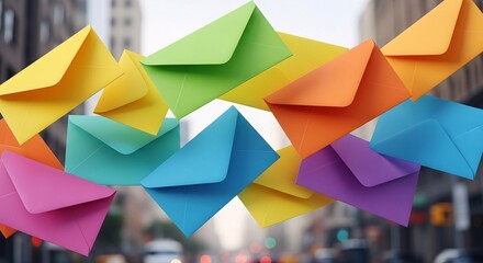 A surreal cityscape featuring origami cranes soaring above a skyline, illuminated by a beautiful sunset.