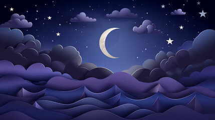 Origami forest with woodland animals in winter night scene