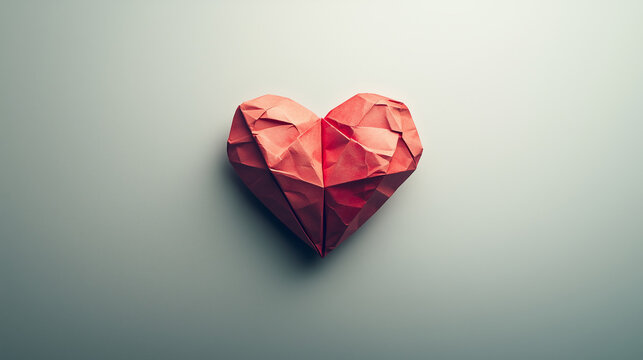 origami kars paper heart on neutral gray background for valentine's day