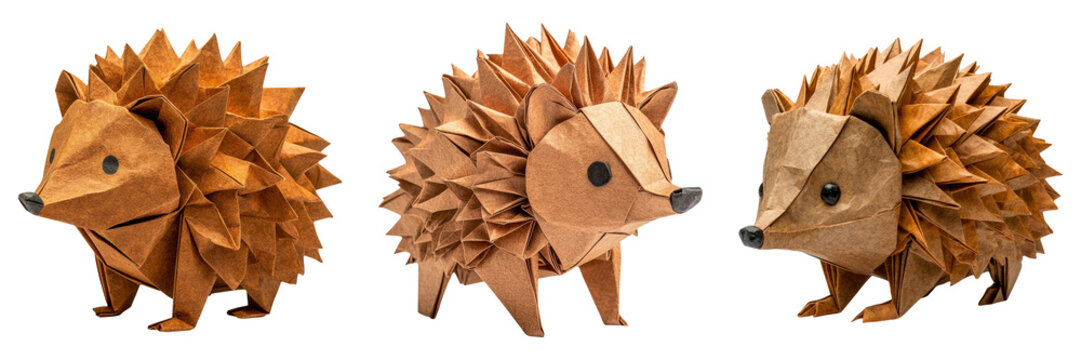 Adorable origami hedgehogs in various poses isolated on transparent PNG image perfect for woodland animal packs or kids' stories