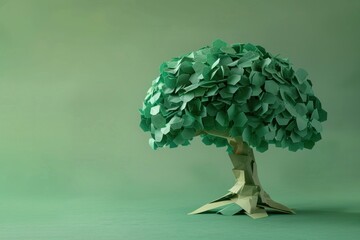 Paper craft forest landscape with layered green pine trees on rolling hills, creating a minimalist nature scene for environmental themes.