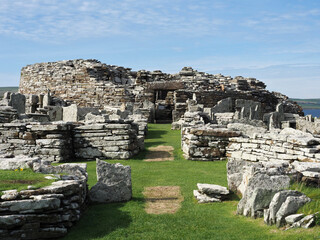 The Broch of Gurness. Iron age buildings. Aikerness Bay. Orkney Islands. Scotland