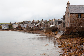 Casual view on the St. Margaret Hope village in Scotland, UK at cloudy weather