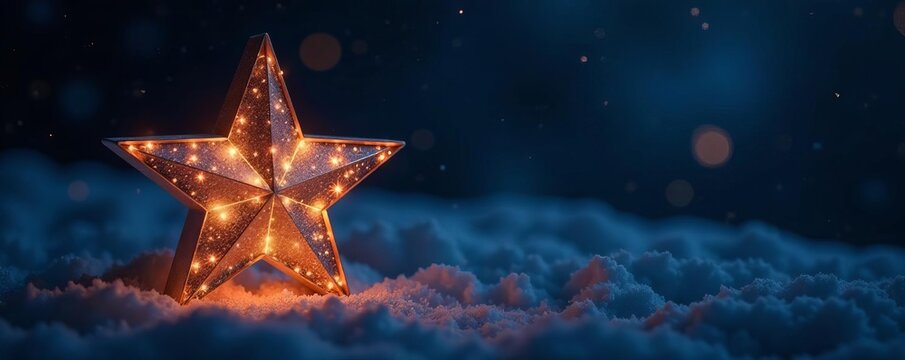 Glowing star ornament against dark night sky backdrop, stars , universe, festivity