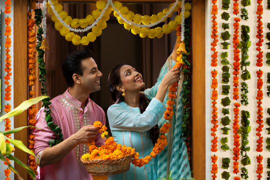 A variety of colorful ornaments dangle from golden strings, creating a festive atmosphere for the holiday season on white transparent background or PNG