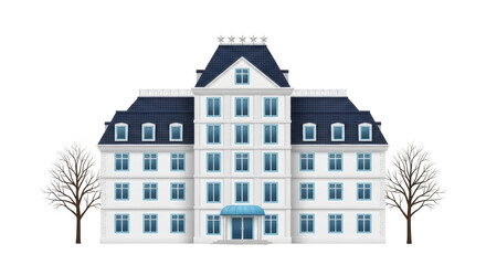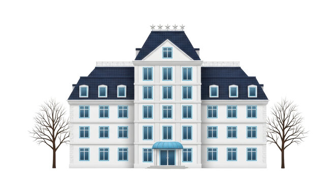 Isolated hotel exterior vector graphic, classic architecture facade with ornate details
