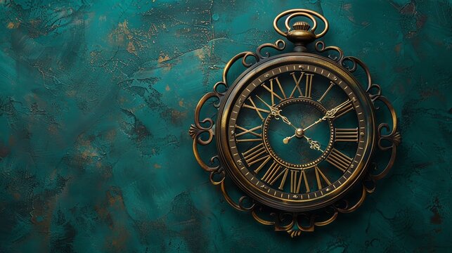 Vintage clock roman numeral midnight golden bokeh festive sparkle countdown celebration elegant detail closeup New Year cheer Vintage clock with roman numeral face marks midnight amid golden bokeh