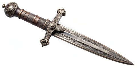 Ornate silver dagger with gem, jewel encrusted handle, cut out transparent