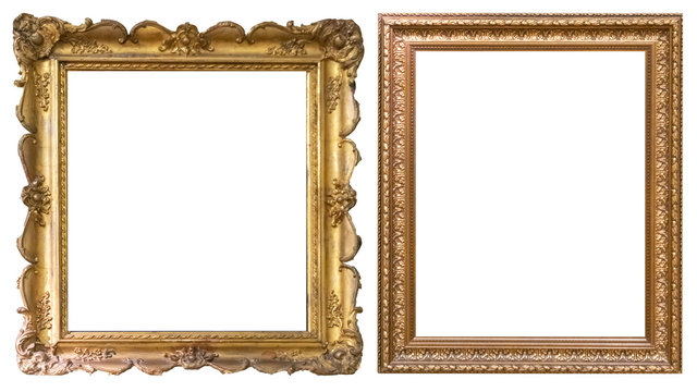 Antique gold frame on the white background