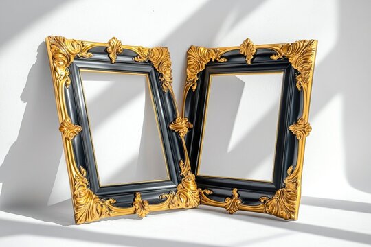 Ornate medieval style UI frames with royal GUI bars and glossy borders for arcade games, featuring cartoon 3D modern illustrations, illustration, frames