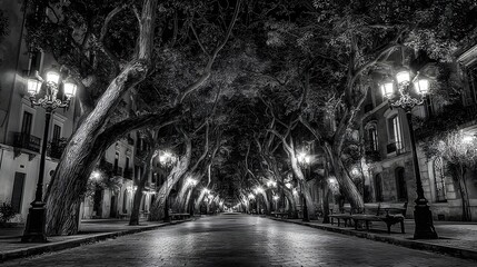 Vintage street lamp with intricate filigree against dark night sky