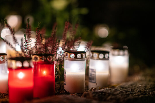People are handling candles in the traditionall religious habit dresses in the church. Celebration of Lucia day, Sweden