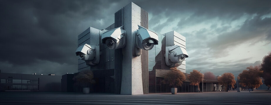 Person surrounded by multiple screens displaying human eyes creating immersive surveillance atmosphere highlighting privacy concerns and digital monitoring concepts