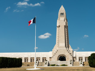 French flag and the Douaumont ossuary near Verdun France