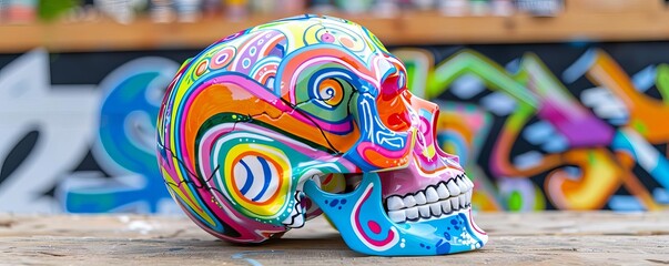 Skull with urban graffiti-style art, Graffiti skull, Osteology