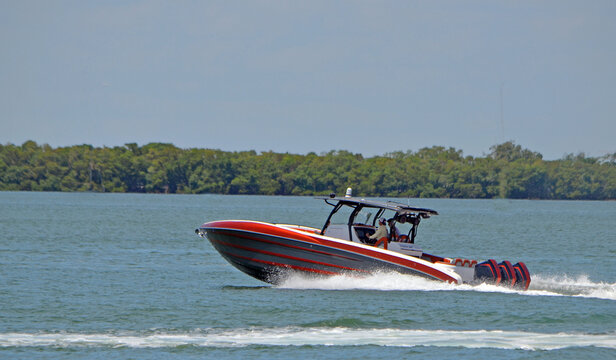 Hi-End Motor Boat Powered by Three Outboard Engines