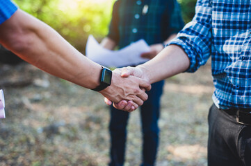 Handshake. Businessman joins hands with a contractor who agrees to jointly implement a housing project.
