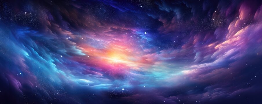 Colorful, stars and space background, panorama universe wallpaper panorama. Generative Ai.
