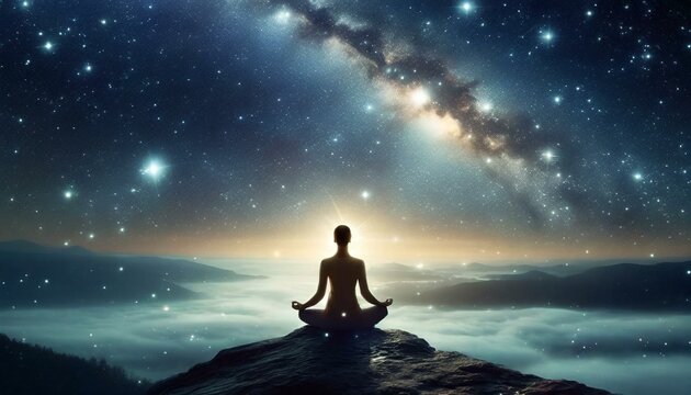 Meditiation in sileut with outer space cosmic environment background