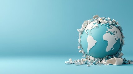 Globe with continents outlined by recycled plastic, highlighting global impact of pollution.