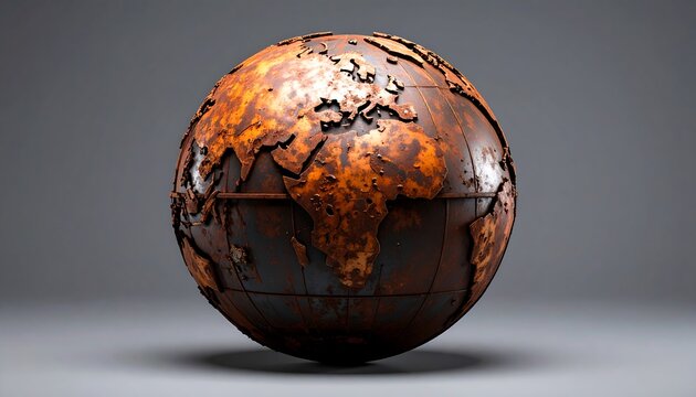 A crystal ball with the outlines of the continents on moss in a forest illuminated by sunlight