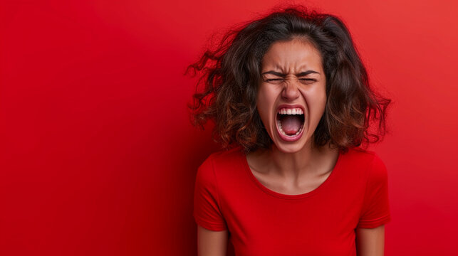 Latin American Woman Reflecting Anger and Frustration, Isolated on Solid Background - Copy Space Provided
