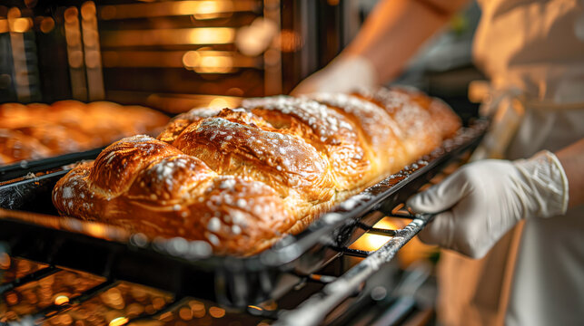 Artisan baker shaping dough at rustic brick oven bakery, handcrafted bread
