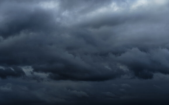 A picturesque view of a cloudy sky with dramatic clouds formations and a soft blue hue in the background