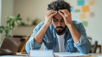 person feeling overwhelmed, with anxiety symbols radiating from their head.