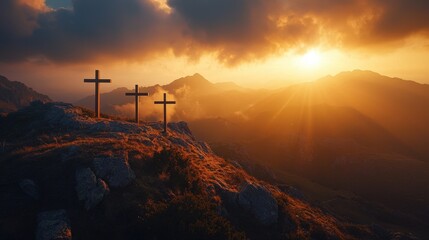 Trekker with prosthetic leg crosses bridge in mountain landscape at sunset
