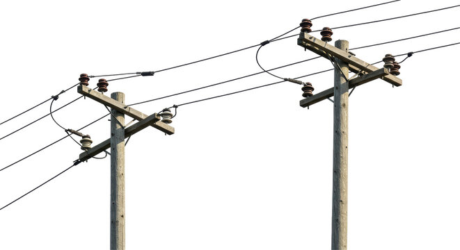 Isolated Wooden Utility Poles with Power Lines Overhead