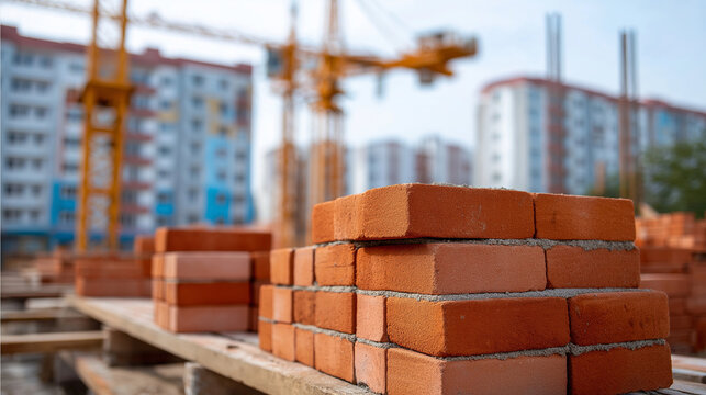 A construction site bustling with activity, cranes towering overhead, symbolizing progress and development