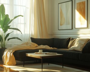 Sunlit living room interior