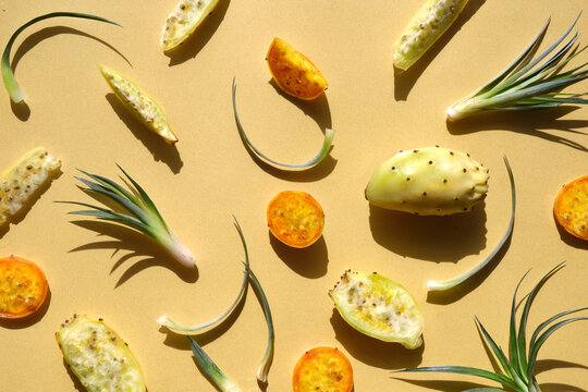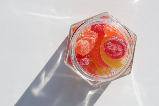 Overhead View Of Colorful Sweets With Shadows On White Background Images