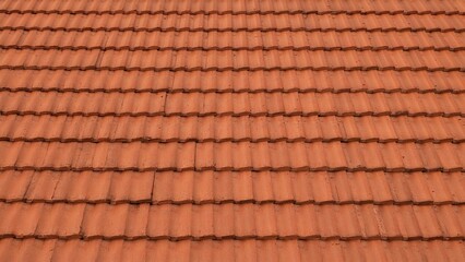 Background of red roof tiles in symmetrical pattern