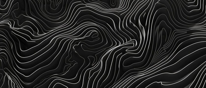 Abstract black white texture background illustration, overlapping paper layers, curves, waves structure