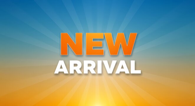 New arrival announcement with sunburst background