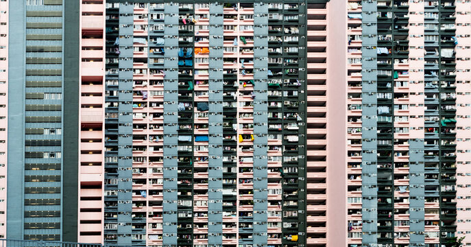 Aerial view on chaos of colored buildings - the heap of houses in the Asian cities caused by big human overpopulation.