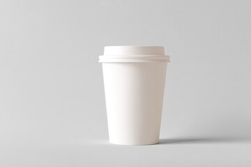 Minimalist studio mockup of a single white 12 oz paper coffee cup with plastic lid, centered composition, no label or branding, matte finish, soft natural lighting