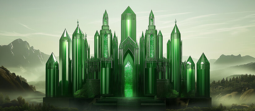 Enchanted yellow brick road leading to magical emerald city in springtime , Fantasy, Oz, Magicians