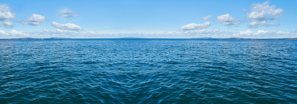 Ozean Panorama Hintergrund mit Himmel und Wolken