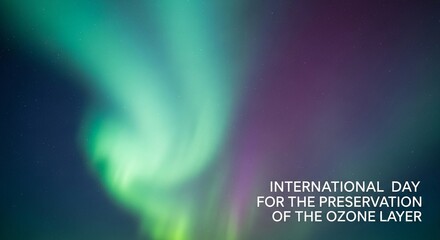 International Day for the Preservation of the Ozone Layer, abstract illustration of green and purple northern lights