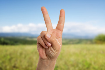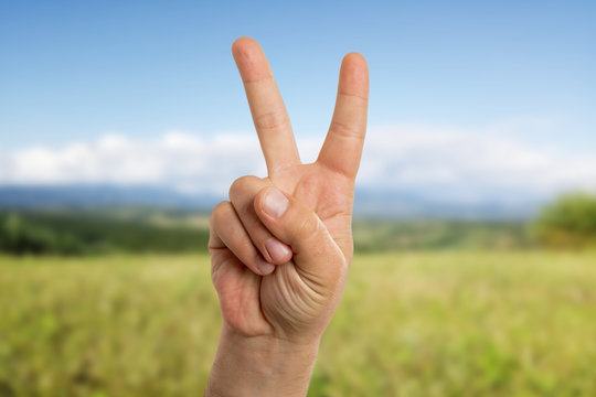 Man showing peace or victory sign