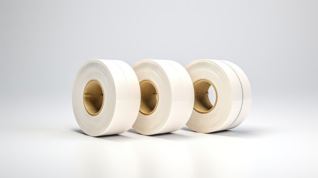 Three Minimalist White Tape Rolls for DIY Projects and Crafting Supplies on Clean Background