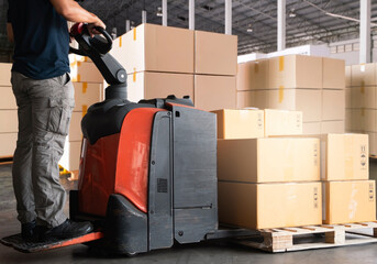 Stack of cardboard boxes near shopping cart
