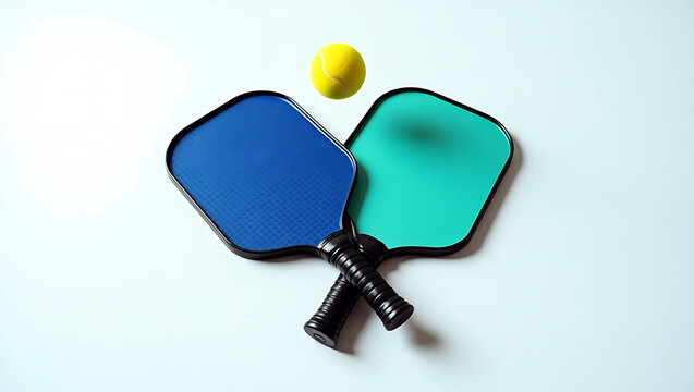 Vibrant Blue Table Tennis Paddles and Ball in Motion on a Soft Pastel Court for Dynamic Sports Action and Recreational Game Play